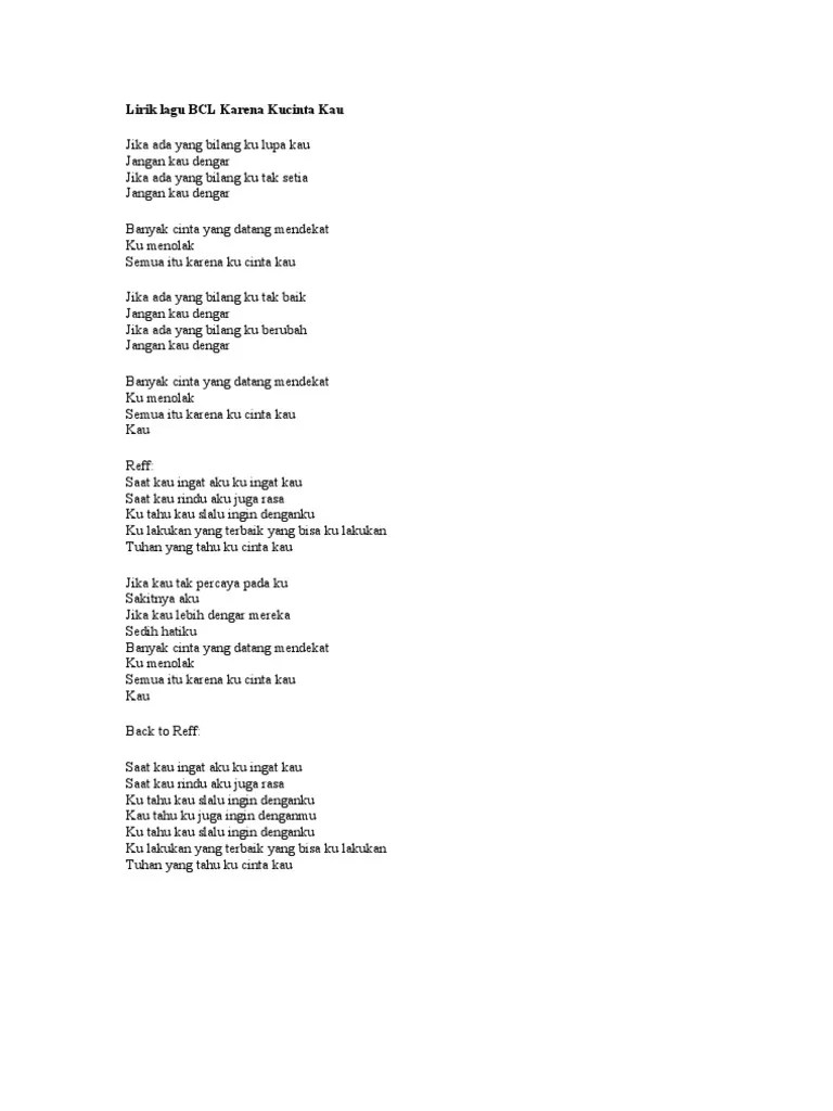 Semua itu karena ku cinta kau. Lirik dan chord bunga citra lestari, bunga citra lestari (lahir di jakarta, 22 maret 1983; Original lyrics of karena ku cinta kau song by bunga citra lestari. Jika ada yang bilang ku tak setia jangan kau dengar lirik & video klip mp4. Jika ada yang bilang ku tak setia.
